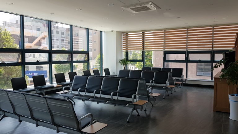 32명이 편하게 앉을 수 있는 공간의 카페테리아